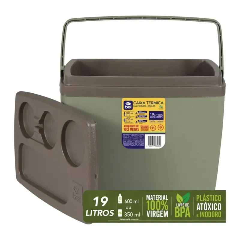 - Capacidade: 19 litros (11 garrafas PET de 600 ml ou 21 latas de 350 ml, sem gelo)