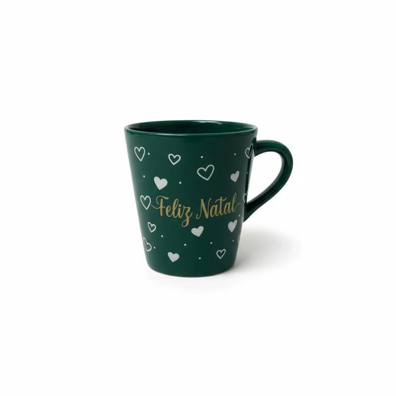 Caneca de Porcelana Copo Natal 120ml Verde Petróleo - Charme e elegância natalina em tamanho compacto