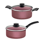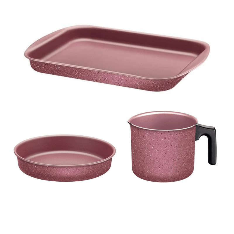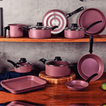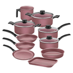 Jogo de Panelas 10 Peças Turim em Alumínio Starflon Max Rosa | Praticidade, segurança e alta performanceO Jogo de Panelas Tramontina Turim 10 Peças é ideal para quem busca eficiência, beleza e facilidade no dia a dia da cozinha. Produzidas em alumínio com espessura especial, suas peças garantem cozimento rápido e uniforme. O revestimento interno e externo de antiaderente Starflon Max não gruda, oferece maior durabilidade, é fácil de limpar e totalmente seguro, pois é livre de PFOA. Acompanha tampas de vidro temperado com bordas de aço inox, além de cabos e alças em baquelite antitérmico e pegadores em nylon, que não aquecem e proporcionam manuseio confortável e seguro. O conjunto pode ir à máquina de lavar louças e é compatível com fogões a gás, elétricos e vitrocerâmicos.