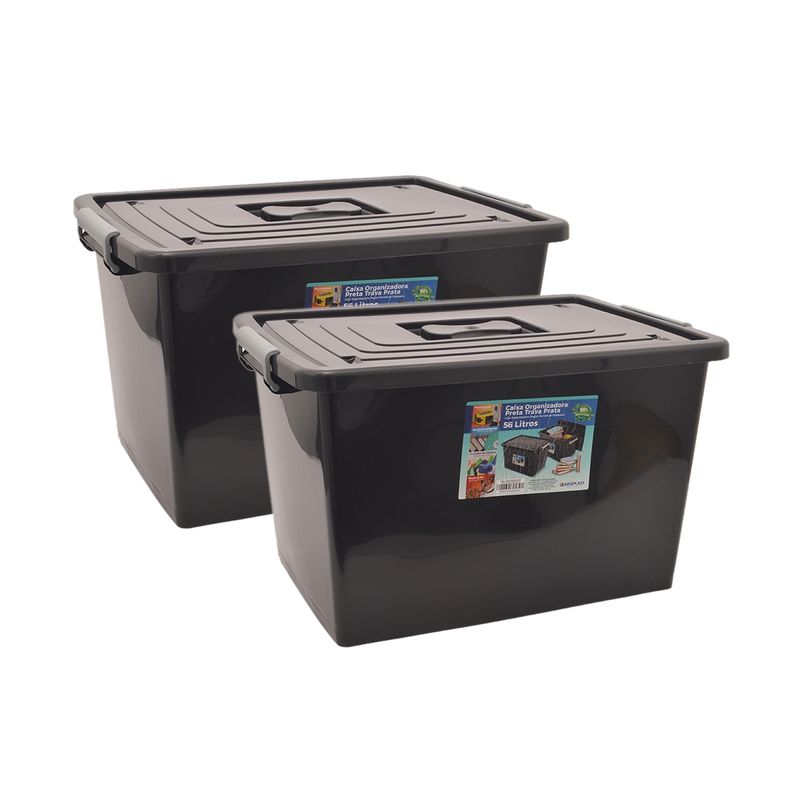 O Kit 2 Caixas Organizadoras com Tampa e Trava 56 Litros Preta é composto por: