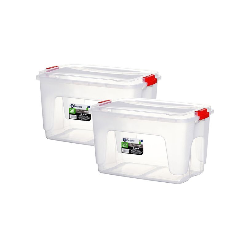 O Kit 2 Caixas Organizadoras 50 Litros Transparentes é composto por: