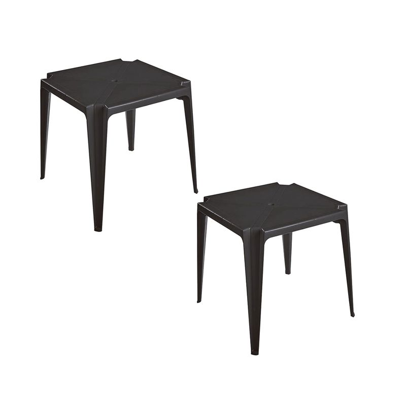 O Kit com 2 Mesas Plásticas Monobloco Quadrada Preta é composto por: