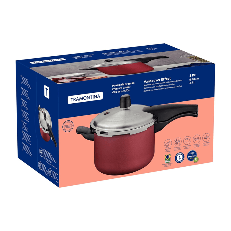 Panela de Pressão Vancouver 4,5L Vermelha - Tramontina | Rapidez, segurança e estilo na sua cozinha.