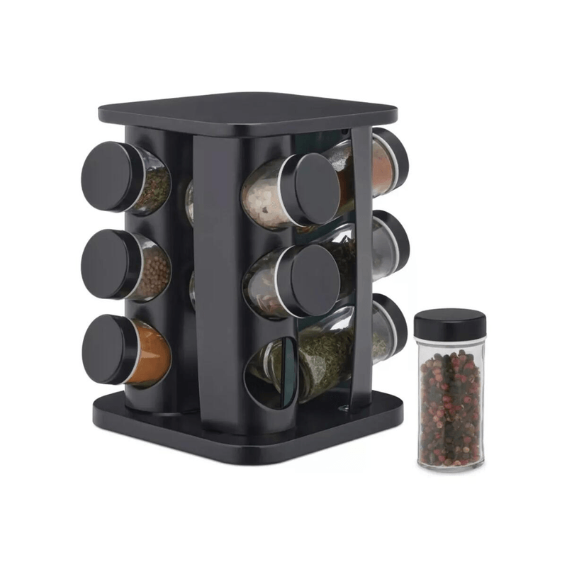 Organização e Praticidade: Mantenha todos os seus temperos organizados em um único lugar, com fácil acesso graças ao mecanismo giratório.
