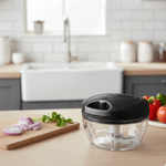 Processador e Triturador de Alimentos 3 Lâminas 500ml Preto - Original Line | Manual para alho e cebola, compacto e eficienteO Processador e Triturador de Alimentos 3 Lâminas 500ml Preto da Original Line na cor preta é a ferramenta ideal para agilizar suas preparações na cozinha. Com operação totalmente manual, sem necessidade de energia elétrica, ele vem com três lâminas de aço inoxidável específicas para processar alho, cebola e outros alimentos menores. Compacto e prático, é um aliado eficiente que ajuda a reduzir tempo e esforço durante os preparos.