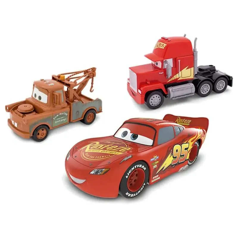 - Personagens: McQueen, Mate e Mack (Disney Carros)