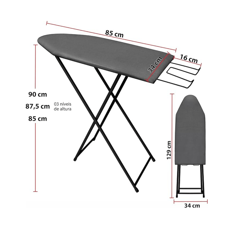 Tábua de Passar Roupa Loretta Preta - Aço Mix | Eficiência e elegância no seu dia a diaA Tábua de Passar Roupa Loretta Preta – Aço Mix foi desenvolvida para garantir praticidade, eficiência e um toque de modernidade à rotina doméstica. Com tampo amplo de 34 × 85 cm e revestimento metalizado 100% algodão, ela oferece excelente deslizamento do ferro e melhor aproveitamento térmico. Possui 3 níveis de regulagem de altura, chegando até 90 cm, garantindo postura correta e mais conforto. Além disso, conta com porta-ferro integrado e estrutura firme, resistente e ideal para o uso diário.